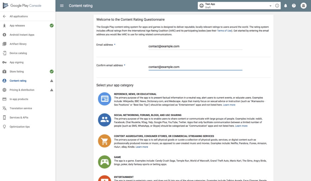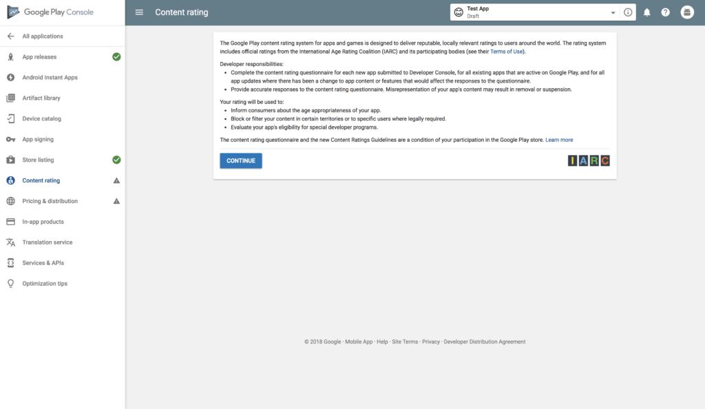 Phần content rating này, bạn cứ trả lời thật với những câu hỏi của họ là ổn. Các câu hỏi kiểu như: Ứng dụng có liên quan đến SEX không? Ứng dụng có kích động, phản động hay liên quan đến Phát xít không? … Cứ trả lời thật nhé