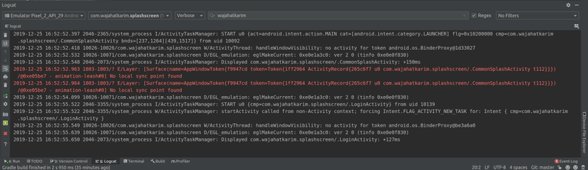 Điều này khá giống với cách sử dụng Activity Theme. Nhưng chúng ta nhận được nhiều lợi thế trong phương pháp này so với Activity Theme. Bạn có thể thêm hình động hoặc bất kỳ loại tùy chỉnh nào trong bố cục của bạn cho màn hình Splash. Bạn cũng có thể thêm logic nghiệp vụ để chuyển hướng người dùng đến bất kỳ màn hình cụ thể nào. Nhưng có một vấn đề: