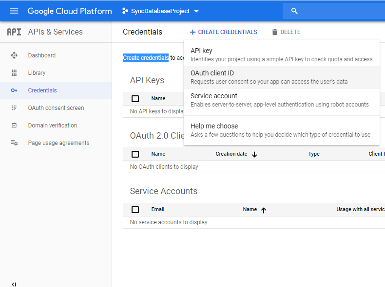 Bước 6: Trong mục Credentials của APIS & Service, chọn CREATE CREDENTIALS, sau đó click vào Oauth client ID
