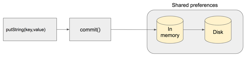 Lưu giá trị vào in-memory trước sau đó ghi dữ liệu một cách bất đồng bộ vào disk-storage. Main thread sẽ không bị blocked và không phải đợi thao tác trên disk nữa. Tuy thao tác ghi lên disk storage là asynchronous nhưng bất kỳ thao tác read ngay sau lời gọi apply() sẽ đều trả về kết quả là mới nhất bởi vì thao tác read(get) sẽ được thực thi thông qua in-memory.